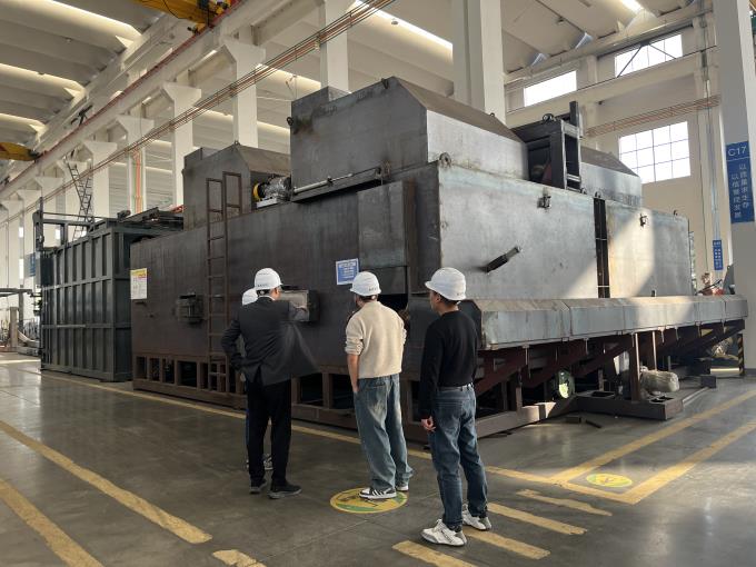 隨后,陳總帶領(lǐng)周總,移步鋁型材擠壓設(shè)備裝配區(qū),深入生產(chǎn)一線了解設(shè)備制造