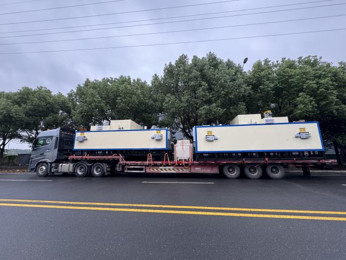兩臺鋁棒加熱爐,兩臺九框料時效爐,裝車出貨四川,此次發(fā)貨的這四臺鋁型材